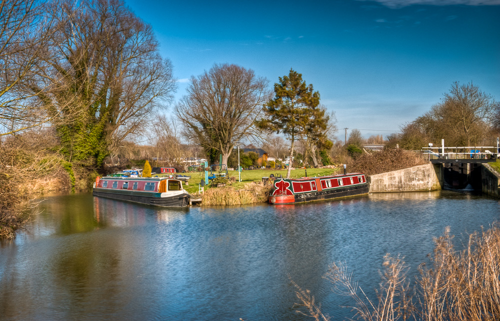 Continuing my walk down the River Stort at Roydon I came across this lock with a number of long boats lined up.