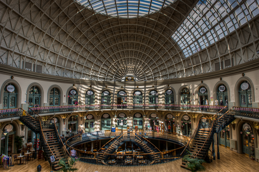 I was born, brought up and worked in Leeds for the first 29 years of my life before moving South with my job. I don’t get back there enough as I do love the city. The city is full of magnificent Victorian buildings, but for much of my time living here many were badly neglected. This has, to a very large degree changed now and one of the best examples of completely renovated buildings is the Corn Exchange, the inside of which you can see here:
