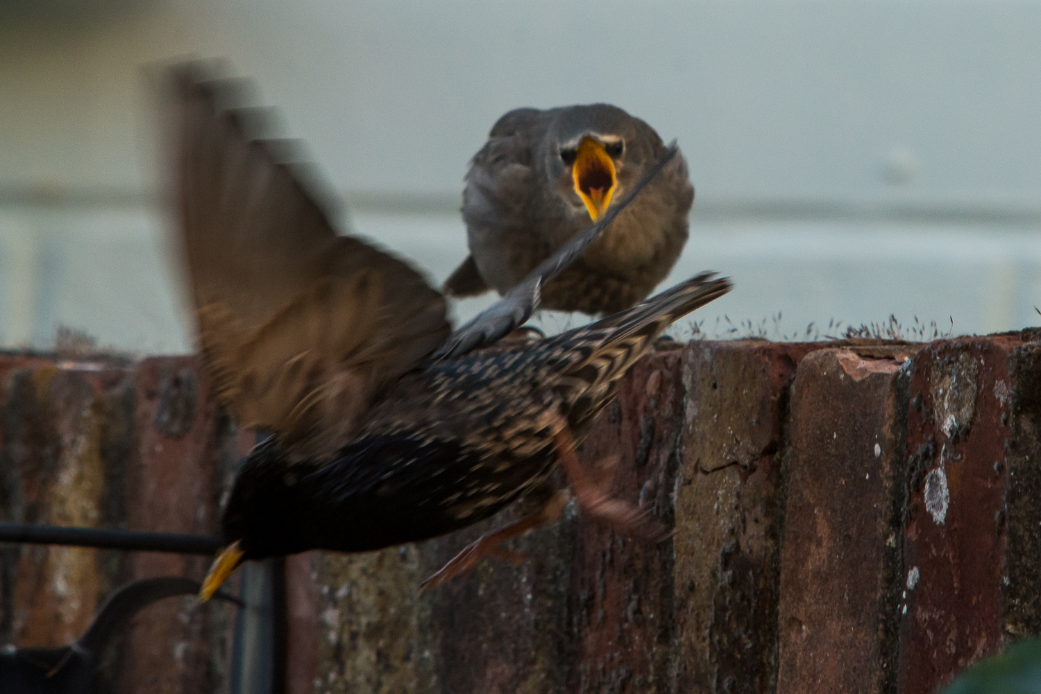 Taken in the back garden, this Starling fledgling was not impressed to see mother leaving!