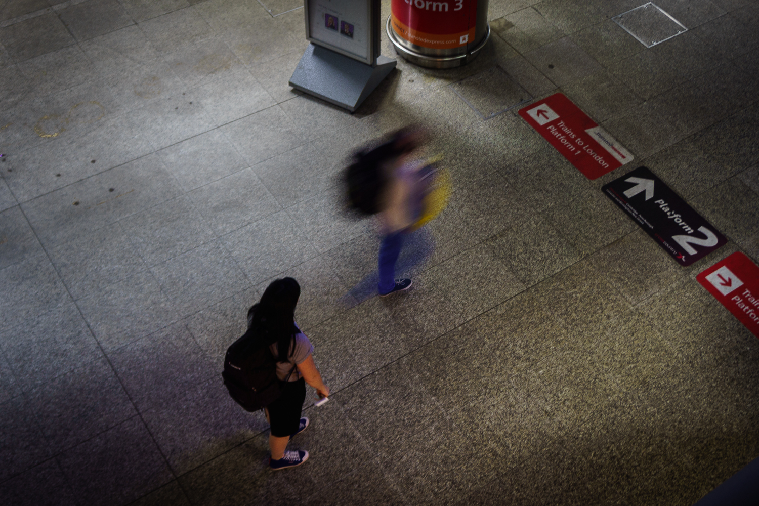 A slightly unusual shot for me, taken looking down at the train level of Stansted Airport, this couple definitely had a two different definitions of running for the train!