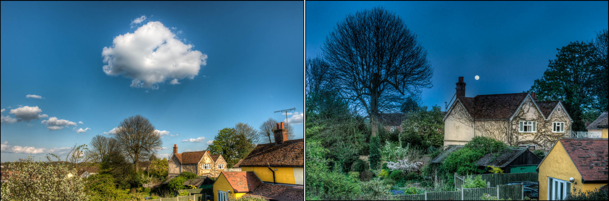 Two views, same day out of the same window, I loved the cloud in the earlier shot and the moon (non-eclipsed) in the second shot so decided to make a diptych.