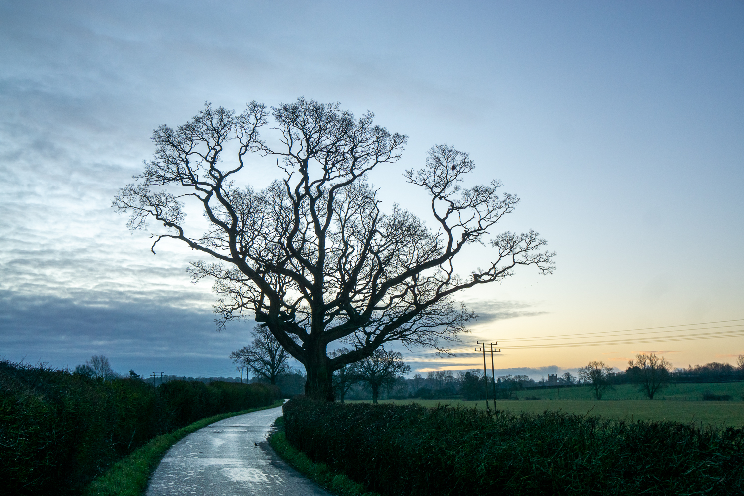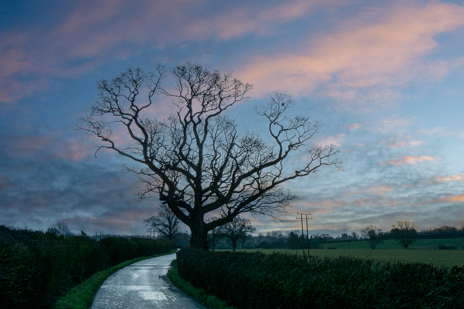 I very nearly posted a very similar picture to last Friday’s today (see below). We had a reasonably nice sunrise this morning, although I had already gone past (and photographed) my normal tree before the colours came out, so I followed my own advise, opened photoshop and did a sky replacement with the sunrise sky I had photographed around 10 minutes earlier. You’d never guess. The sky replacement facility really is very good in Photoshop.