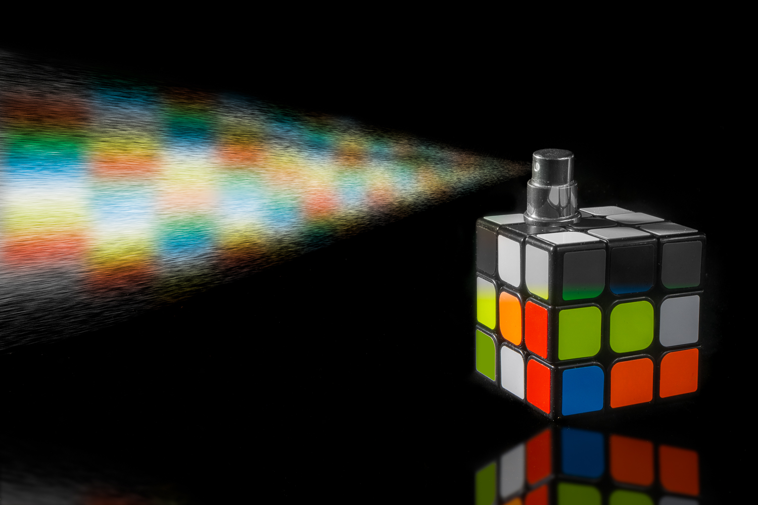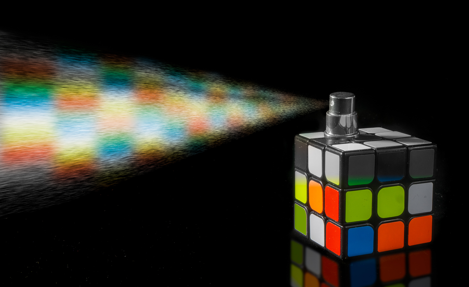 I enjoyed doing this but have been left slightly disastisfied that no one noticed the black and white part of the image showing how the orange (or cube) is being drained of its colour as it is sprayed…perhaps I need to be less subtle.