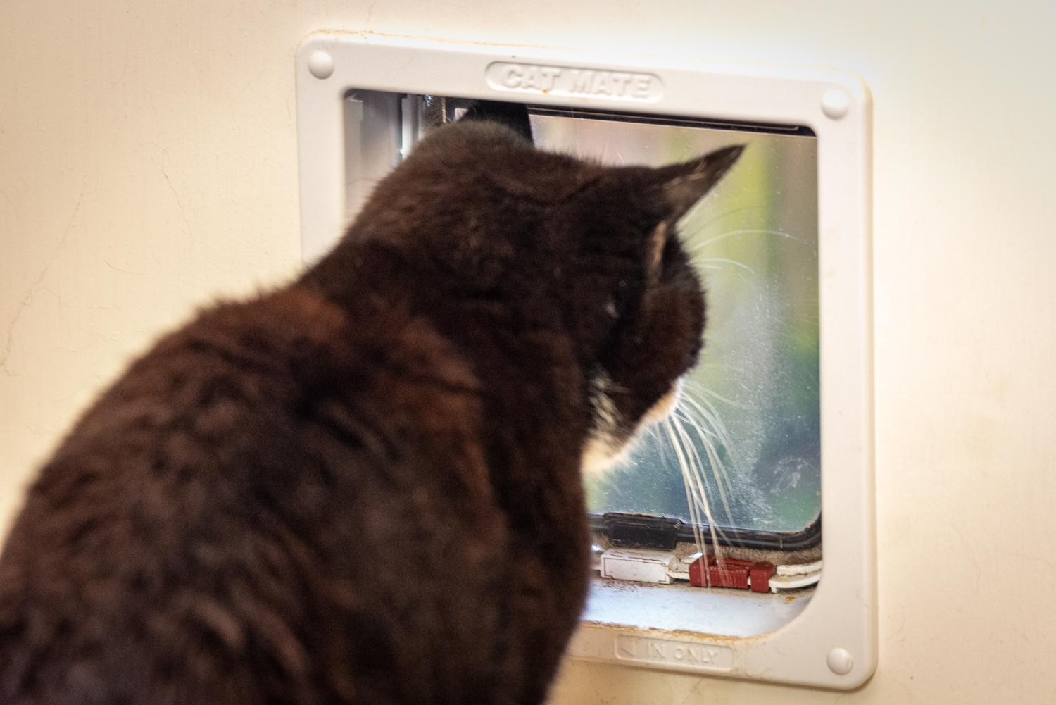 Badger has been watching all the goings on on his own TV aka the Cat flap…see below!