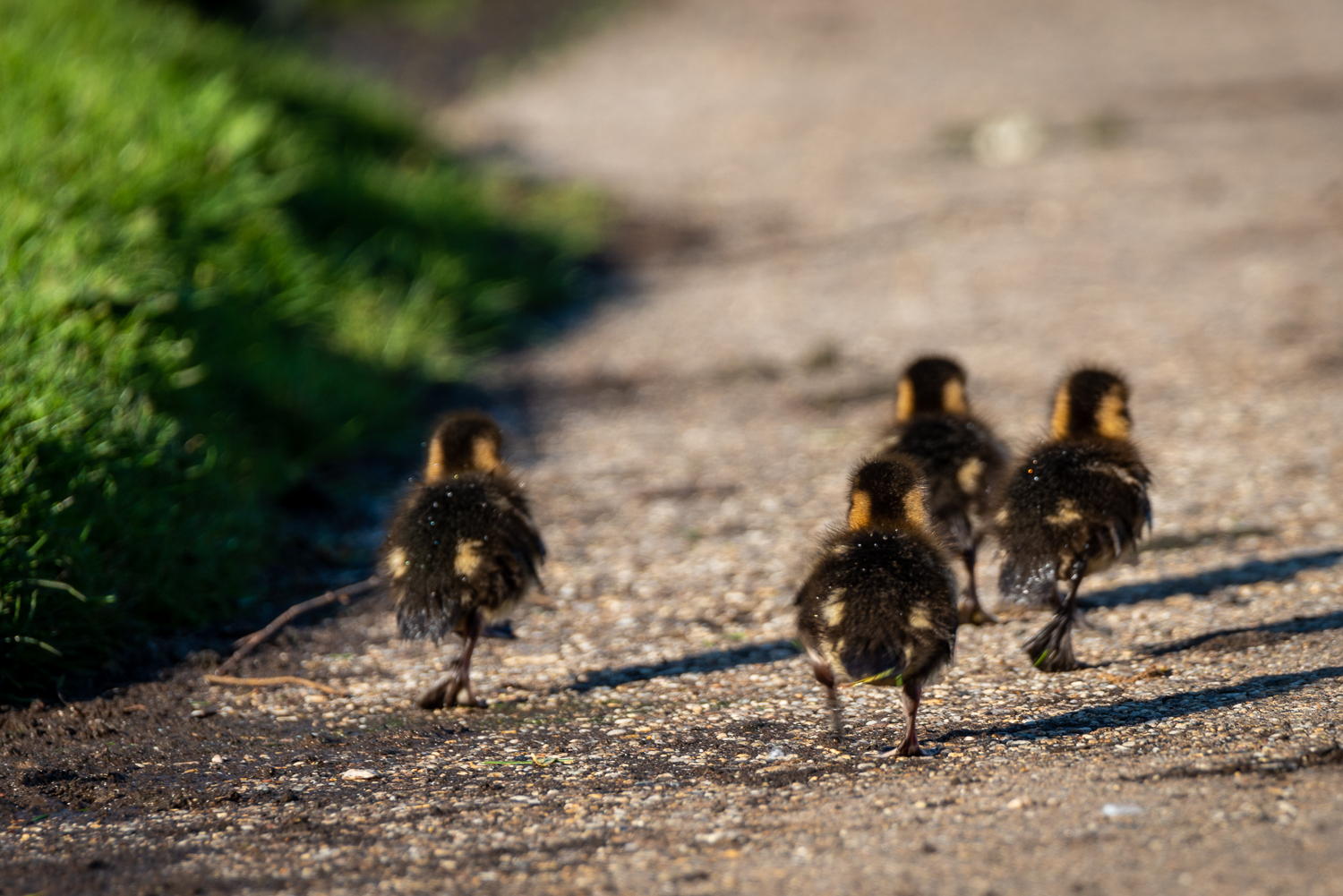 As there was nothing to do and the sun had come out I wandered across to Doctors Pond to find 10 little ducklings rushing about the place.