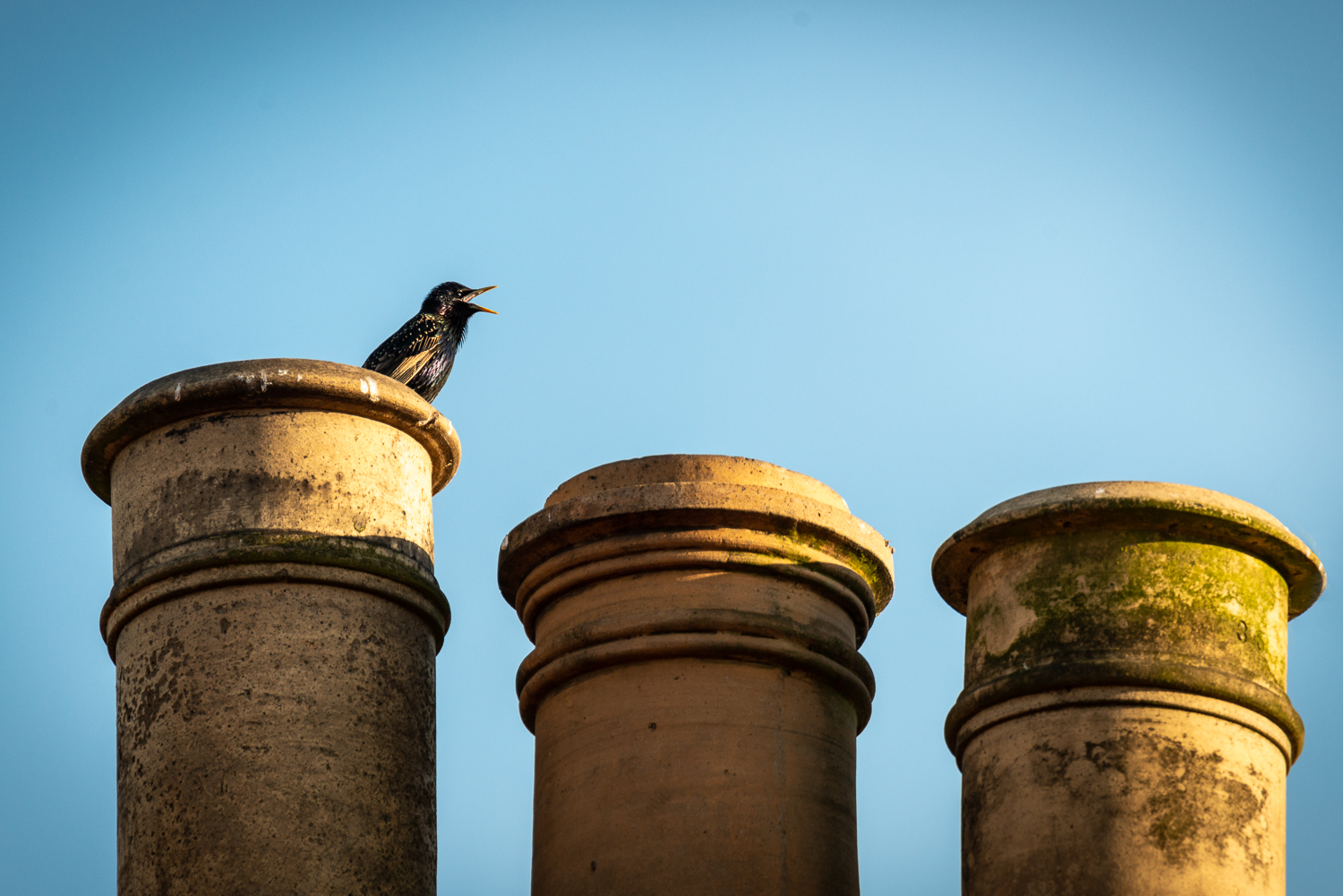 Once we had finished our work I had a brief sit down in the garden and caught this starling on next doors chimney pots having a good old sing-song.