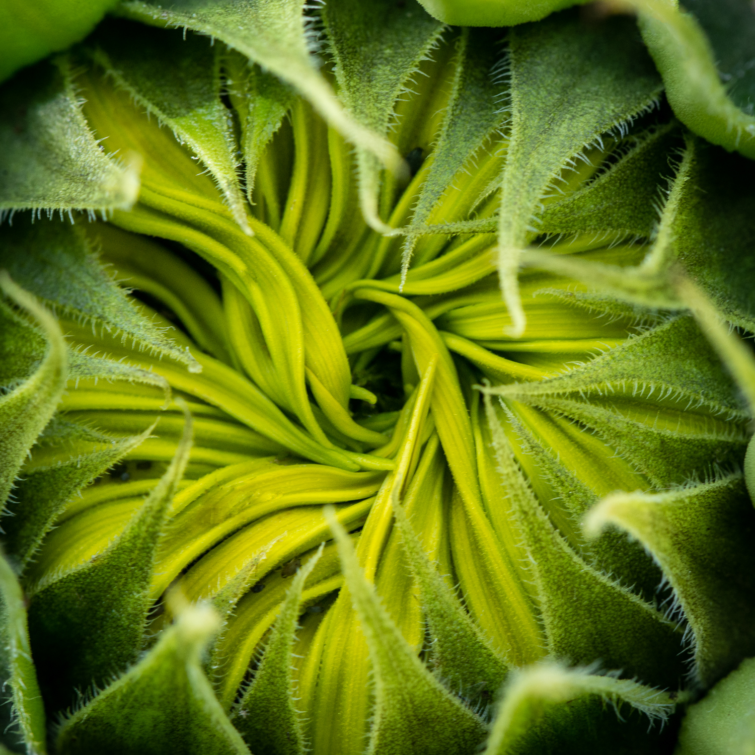 Back into the garden with the macro lens today and this shot of one of our sunflowers that is slowly blooming.
