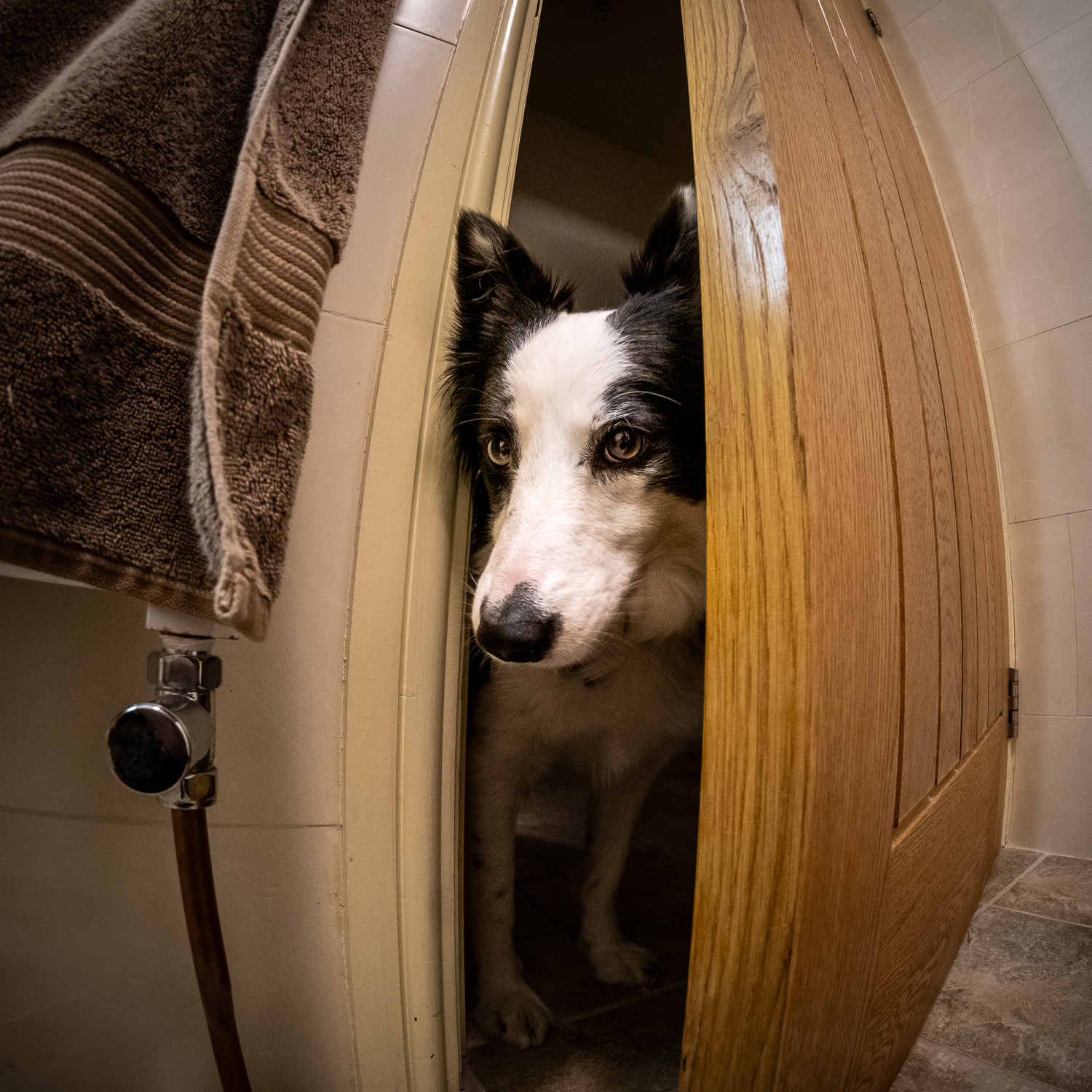 One of Jess’s favourite tricks is opening the bathroom door whilst you are otherwise engaged. I got my own back today by capturing her as she did it. She hates having her picture taken, she really doesn’t like the camera pointing at her for some reason.