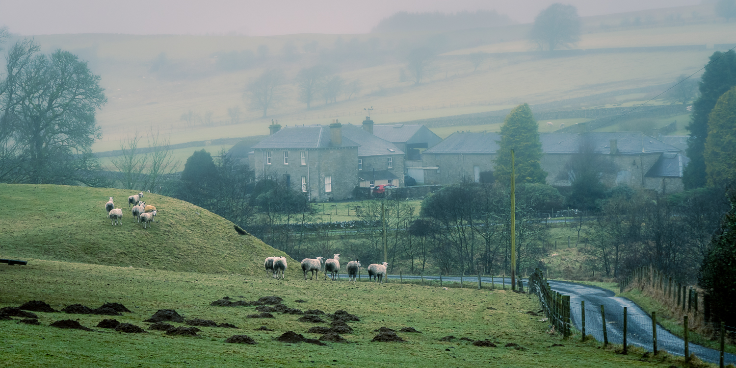 This morning was cold and murky and as Jess and I were heading up to the Forestry track for our morning walk I saw this scene of the neighbouring farms sheep awaiting their breakfast. We, and the sheep, could hear the tractor that would be bringing their morning breakfast but it was obviously dealing with another area of the farm and didn’t appear while we were there.