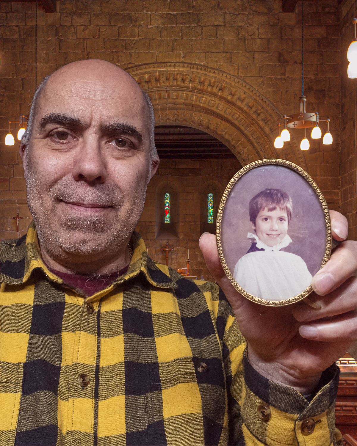 So, the main shot was taken today of me holding the early picture of me as a choir boy. The church interior in the background is, indeed, Adel Parish Church but taken just 4 years ago (it hasn’t really changed except they no longer have the old organ) – you can see details here – Adel Parish Church
