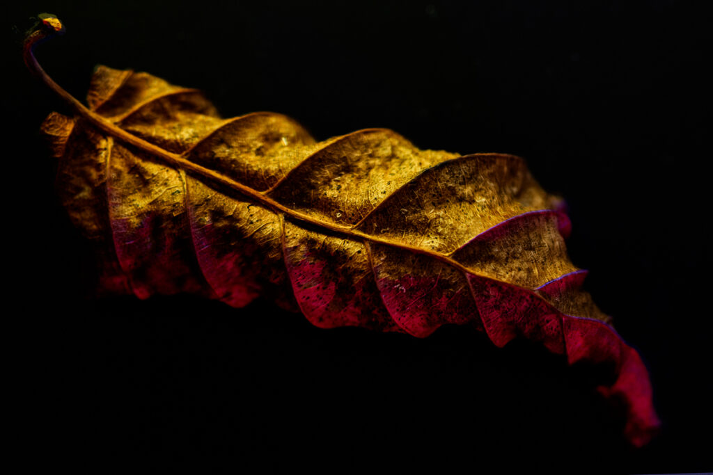 Just a crisp brown leaf I found under the beach hedge this afternoon but looks, with a bit of added lighting, like a chrysalis…at least I think so!