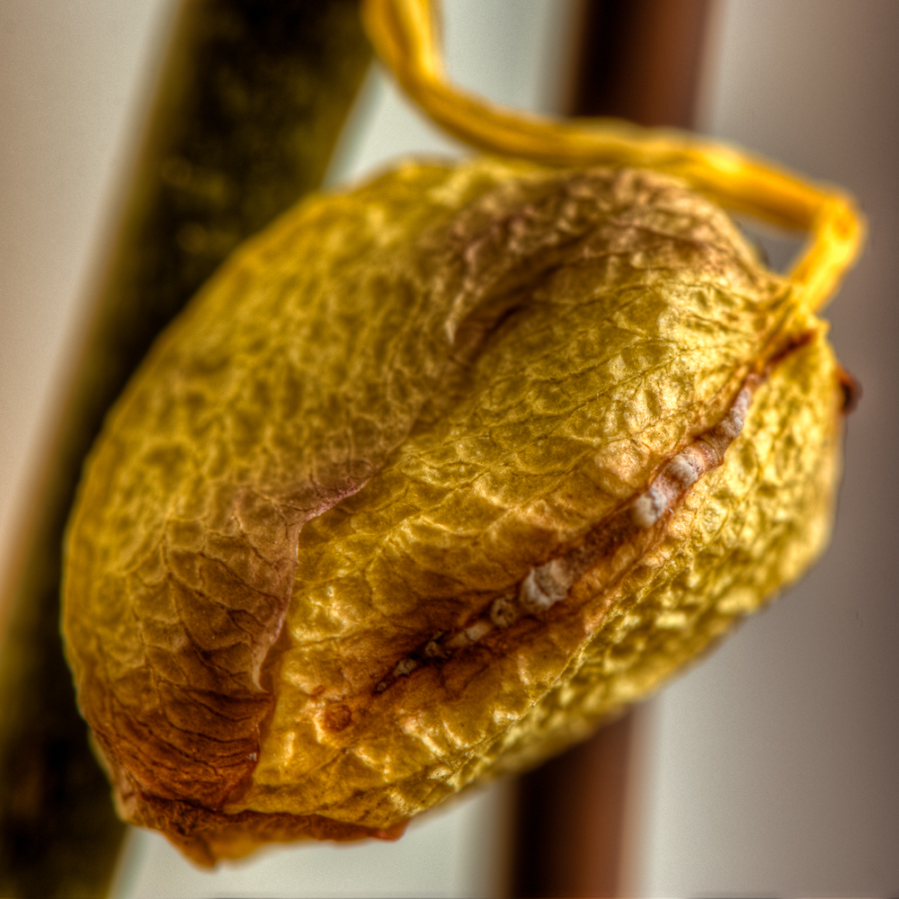 I took some shots of a Moth Orchid we have. I noticed this bud that didn’t look like the other 2 buds coming out of the flower, sure enough, it is a papery husk. Strangely more interesting than the living, healthy buds.
