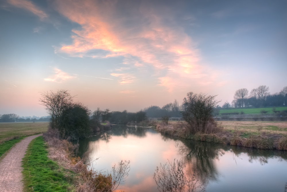 The sun finally made an appearance today so I nipped down to the River Stort by the A414 to catch the sunset this evening.