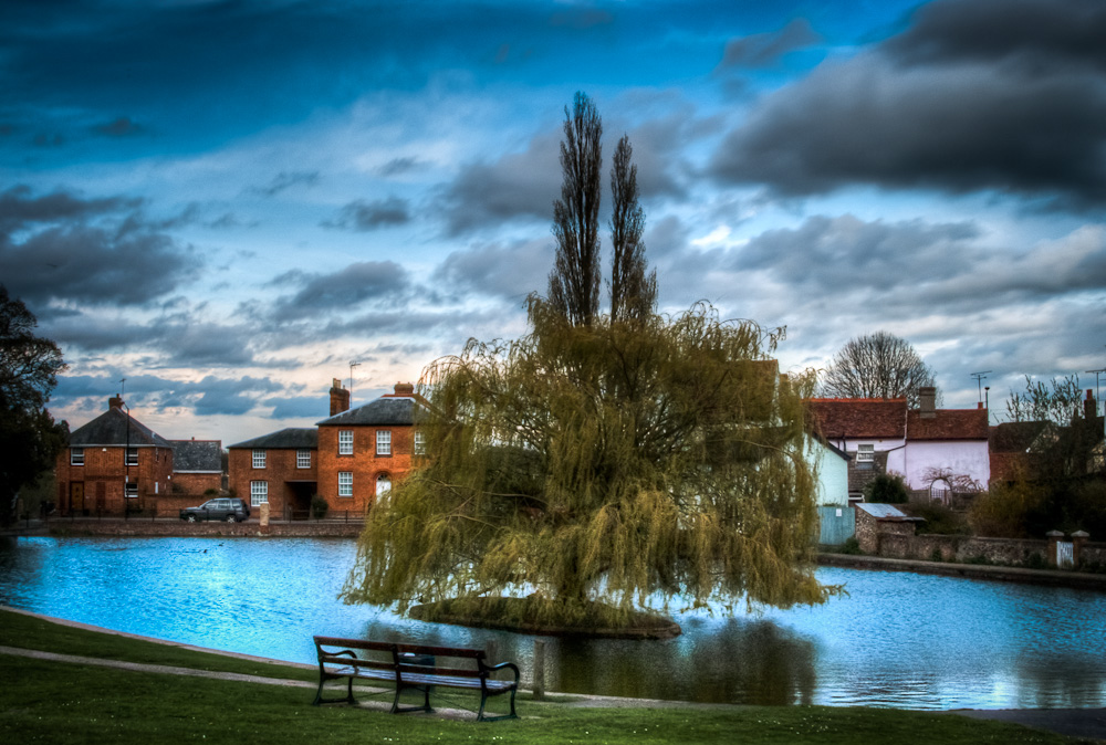 Sunshine and showers here in Dunmow at the moment so here’s a quick photograph of Doctors Pond looking towards North Street.