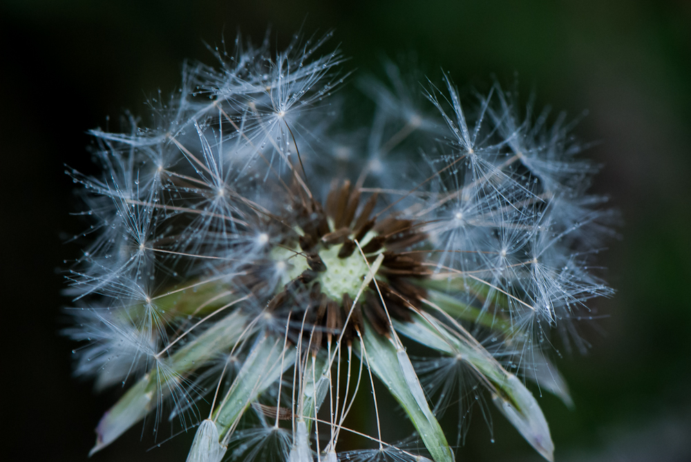 I saw this dandelion head last night – it was perfect, but I’ve shot those before so I ignored it. When I went out into the garden this evening I was not surprised to see it had been damaged by the heavy rain we had last night. I was more interested in it now as I do like the seeds at the end of the umbrella. When I focused on this with my macro lens I was delighted to see the tiny water droplets all over and this is what I got (click to enlarge to get the full impact):