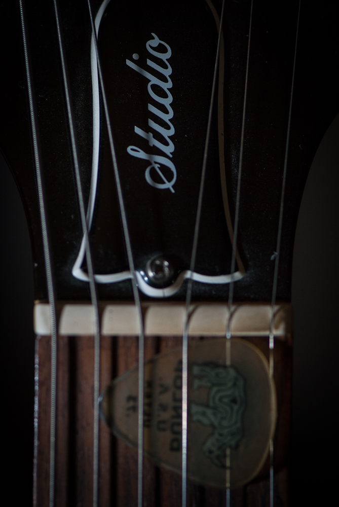 I’ve been playing with flash today, something I’ve not done much of. I was quite please with this shot of my Gibson, Les Paul Studio guitar and plectrum: