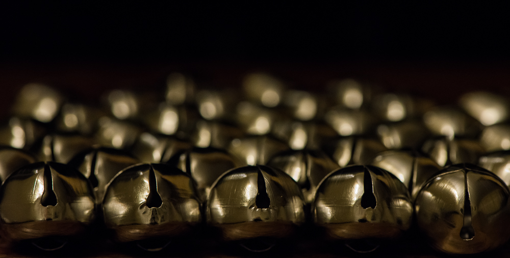 I noticed these little silver bells on the dining room table which are, I’m led to believe, for Christmas. I spent a little time lining them all up so they all pointed the right way and took my shots. Only after I had put everything away did I notice a glaring error with the picture…