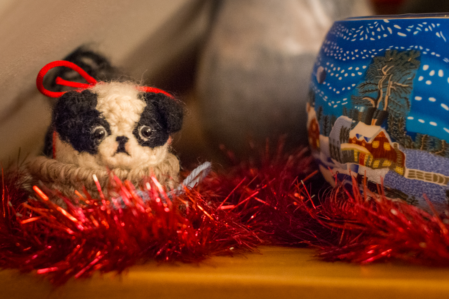 I’m not sure where this pug came from, but it looks like he’s here to stay for Christmas.