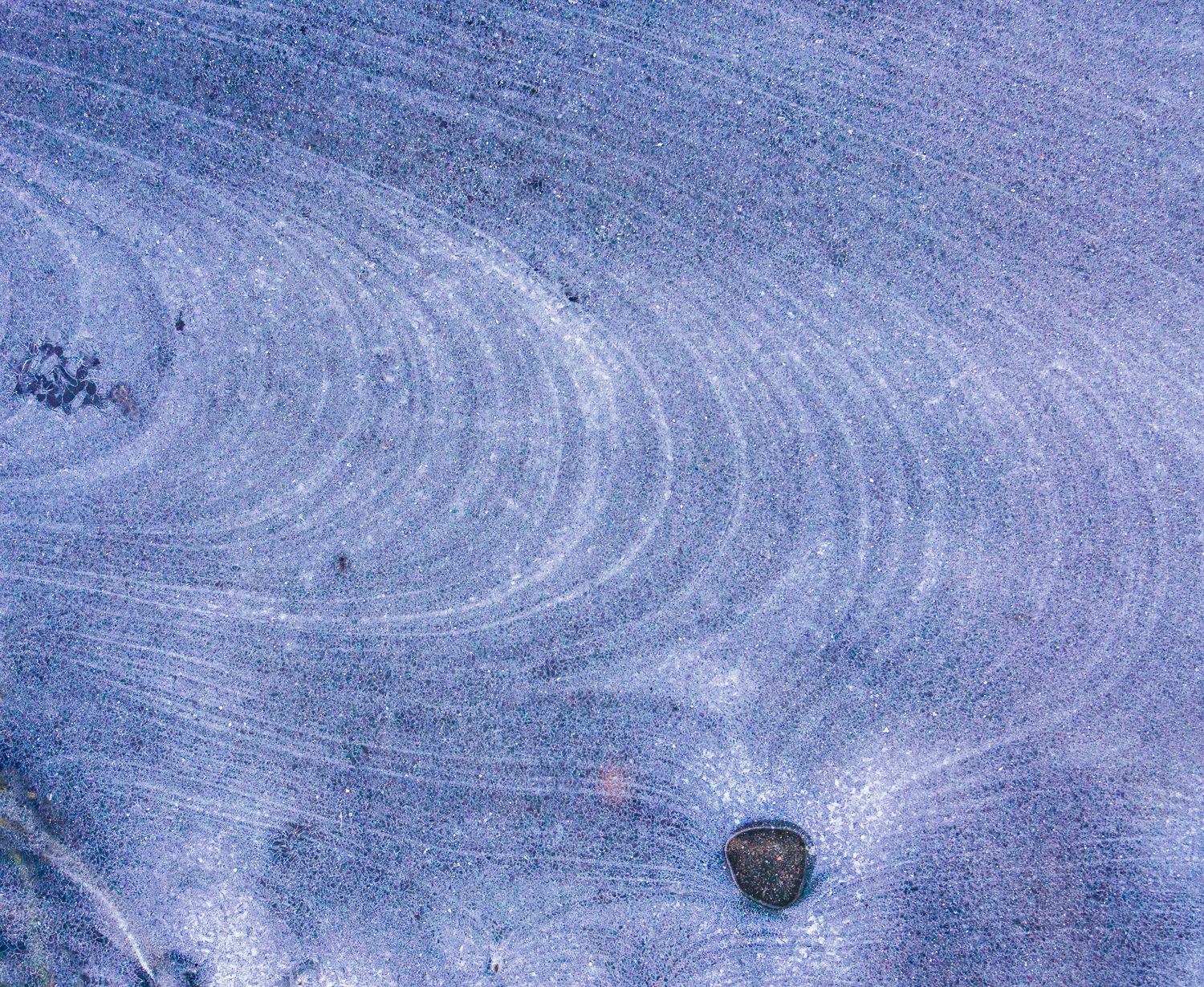 Simply a frozen puddle with a little stone creating some nice lines and patterns in the ice. A nicely abstract start to the week.