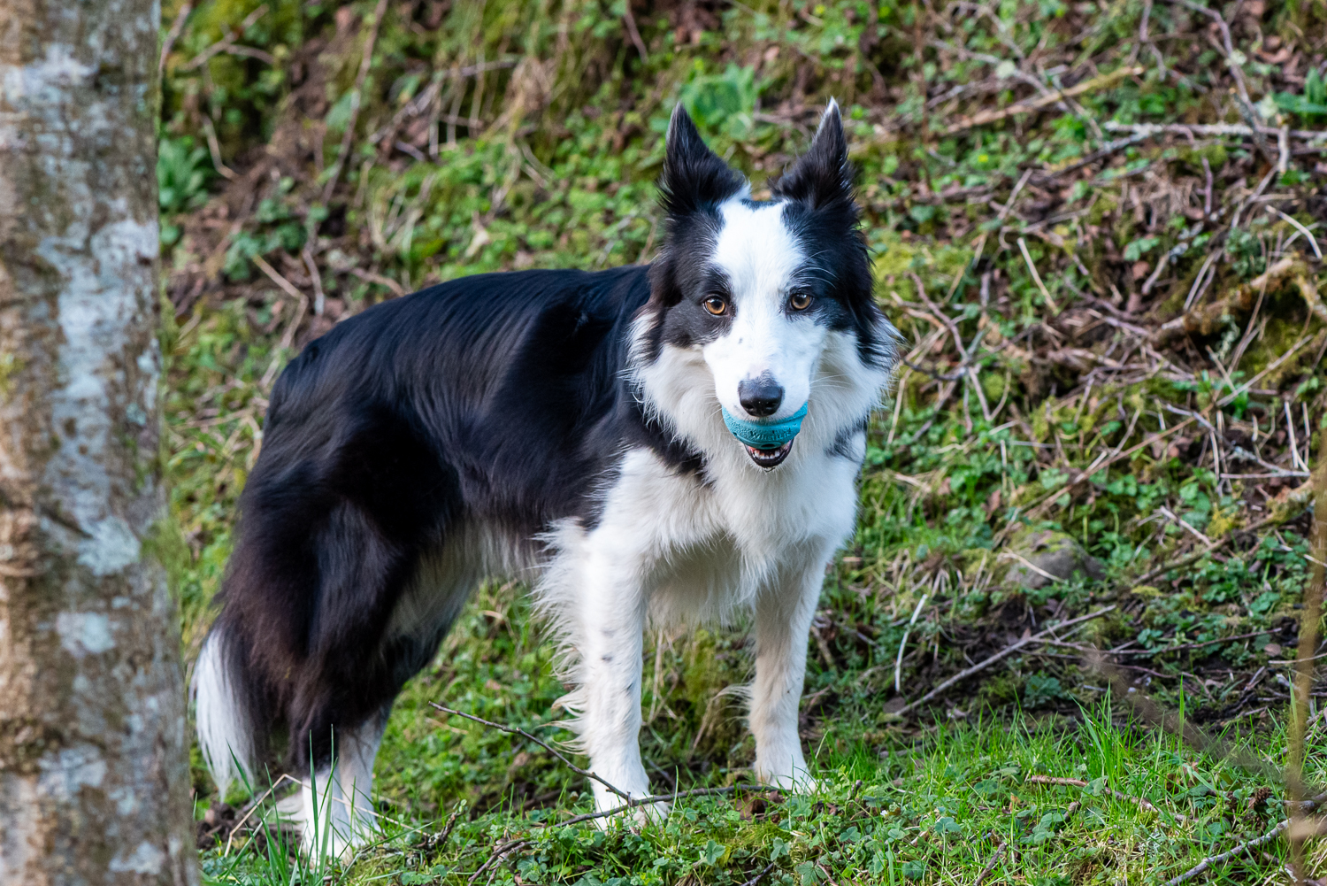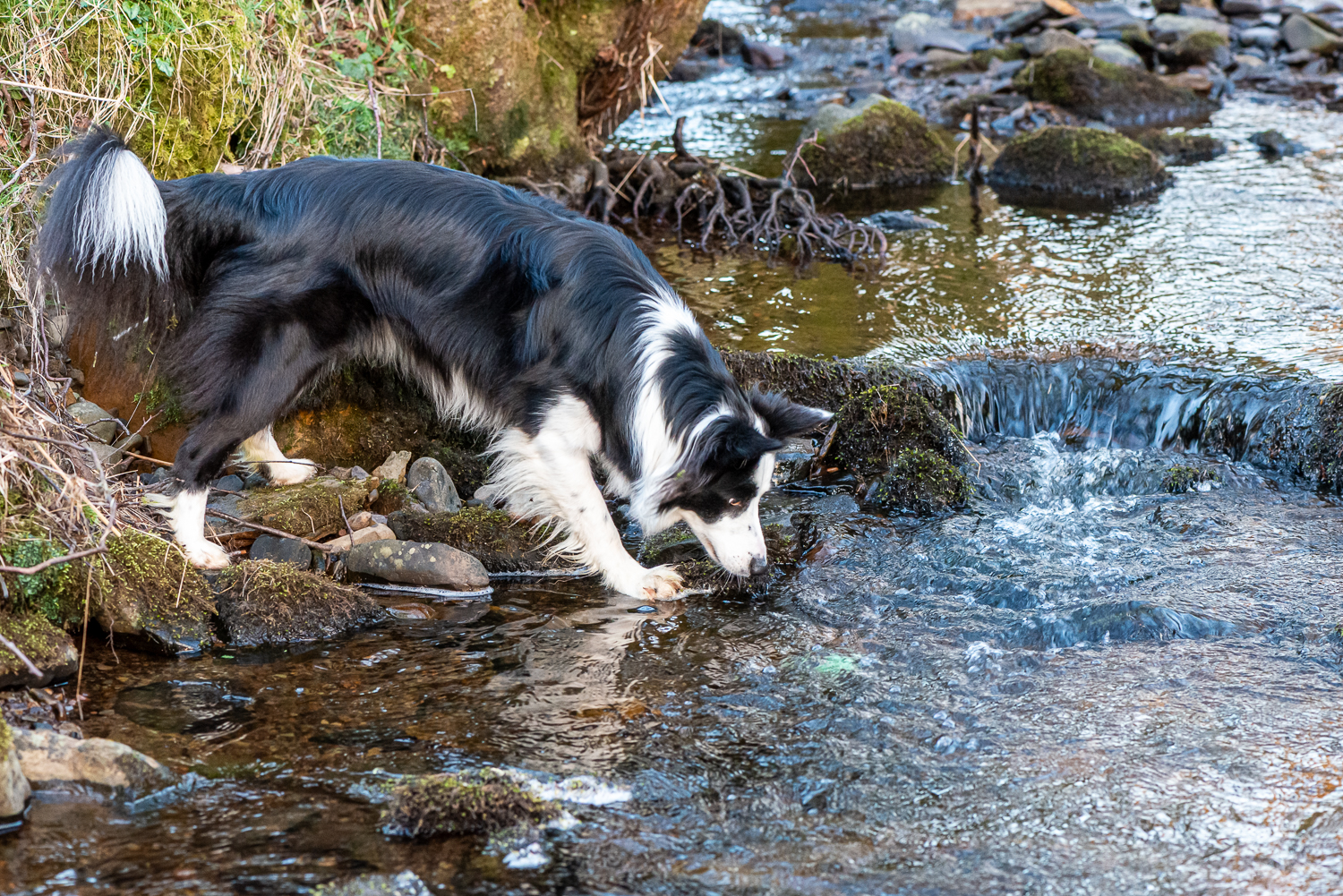 Jess also tried to lose her ball in the burn – here she is pondering whether she cared enough to get her paws wet and retrieve it. She didn’t, I had to retrieve it and that water is very cold!
