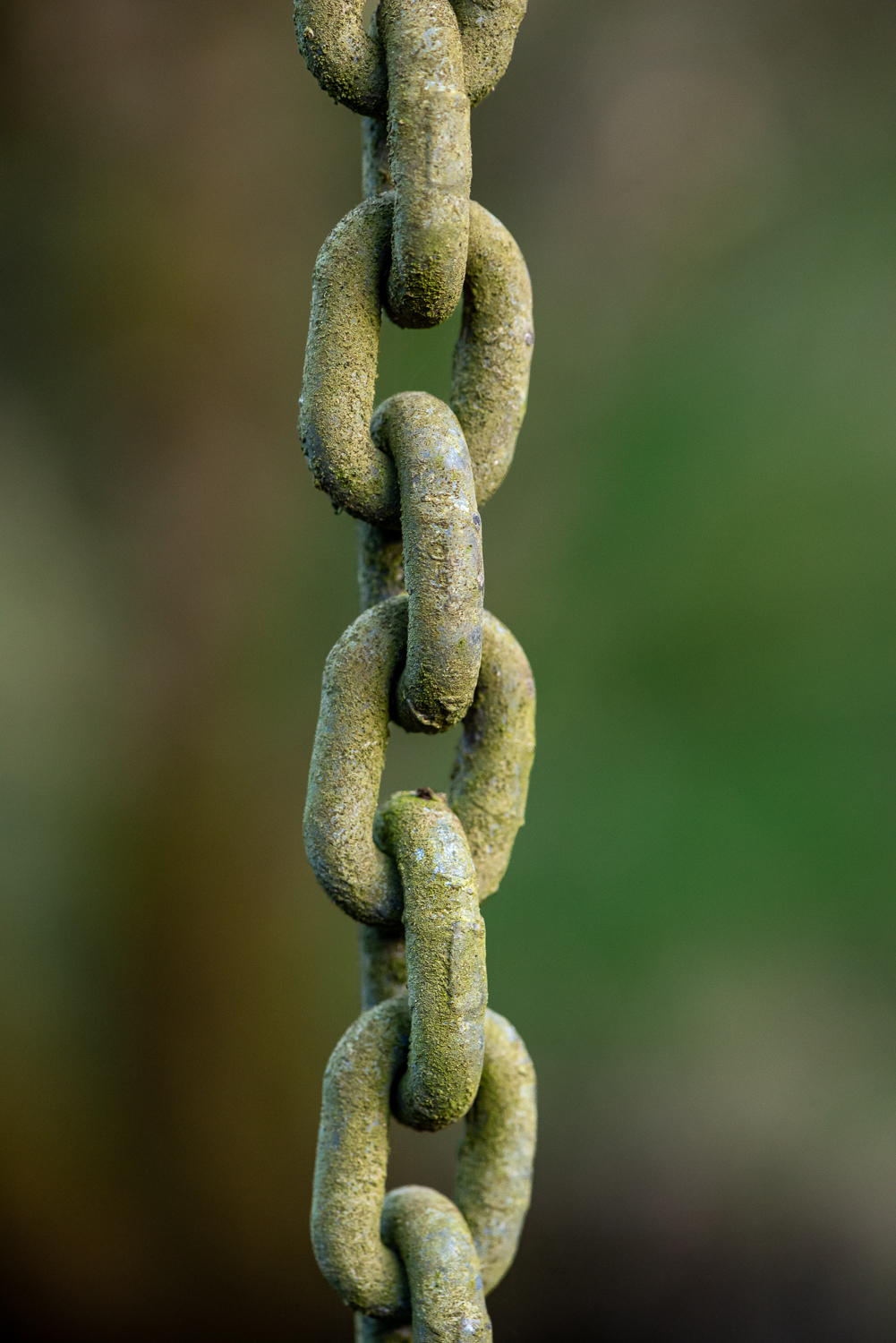 Down at the Harden Burn this afternoon in the garden and I was having a look at this chain which is strung from a wire across the stream just before you reach a tunnel that goes under the road next to our house. There is a matching set up on the other side of the tunnel. I don’t know why it is there – it doesn’t really stop anyone or anything from going through and under the road. As I only had my macro lens with me I wasn’t able to photograph the whole thing, you can, however see from what the chain hung from below. If I had stepped back further I’d have been, literally in deep water and certainly would have overtopped my wellingtons…so I didn’t fancy that. I’ll revisit this on another day.
